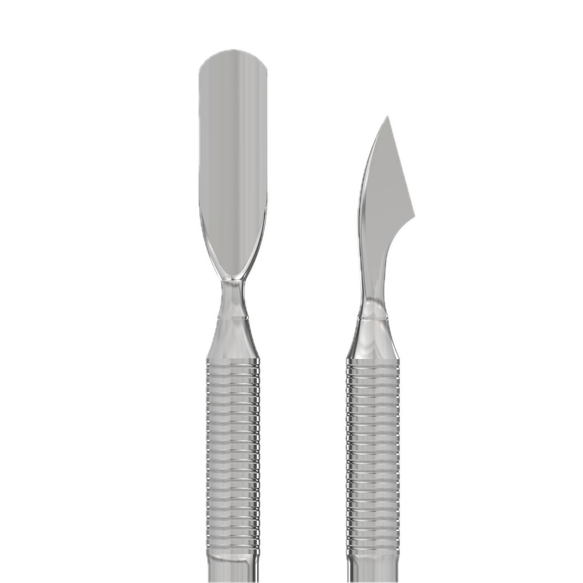Το επαγγελματικό σπρωχτηράκι STALEKS PRO EXPERT 30 TYPE 3 είναι ένα εργαλείο υψηλής ακρίβειας, απαραίτητο για τη σωστή προετοιμασία του μανικιούρ και του πεντικιούρ. Διαθέτει δύο λειτουργικά μέρη: ένα αυξημένου μεγέθους στρογγυλεμένο πλατύ pusher και ένα μαχαιρίδιο (cleaner). Το πλατύ άκρο είναι ειδικά σχεδιασμένο για φαρδιές ονυχαίες πλάκες, διαθέτοντας μια ελαφριά κλίση που ακολουθεί το σχήμα του νυχιού για τέλεια εφαρμογή χωρίς τραυματισμούς.