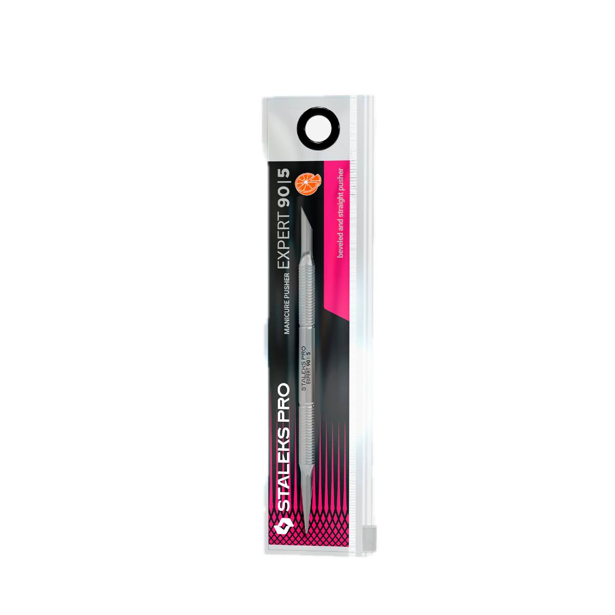 Το επαγγελματικό pusher STALEKS PRO EXPERT 90 TYPE 5 αποτελεί την ιδανική επιλογή για τεχνίτες που αναζητούν ένα εργαλείο υψηλής ακρίβειας για την προετοιμασία των νυχιών. Διαθέτει δύο λειτουργικά μέρη: ένα λοξό pusher και ένα ευθύ ορθογώνιο pusher.