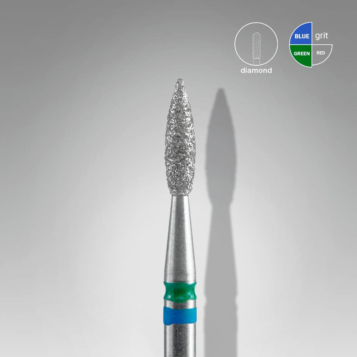 Η φρέζα διαμαντιού STALEKS PRO DUO “Μυτερή Φλόγα” (2,1mm / 8mm) με διπλή επίστρωση και μπλε-πράσινη χάραξη (μέτρια-σκληρή) είναι ιδανική για την επεξεργασία ευαίσθητου δέρματος. Κατάλληλη για αρχάριους και έμπειρους.