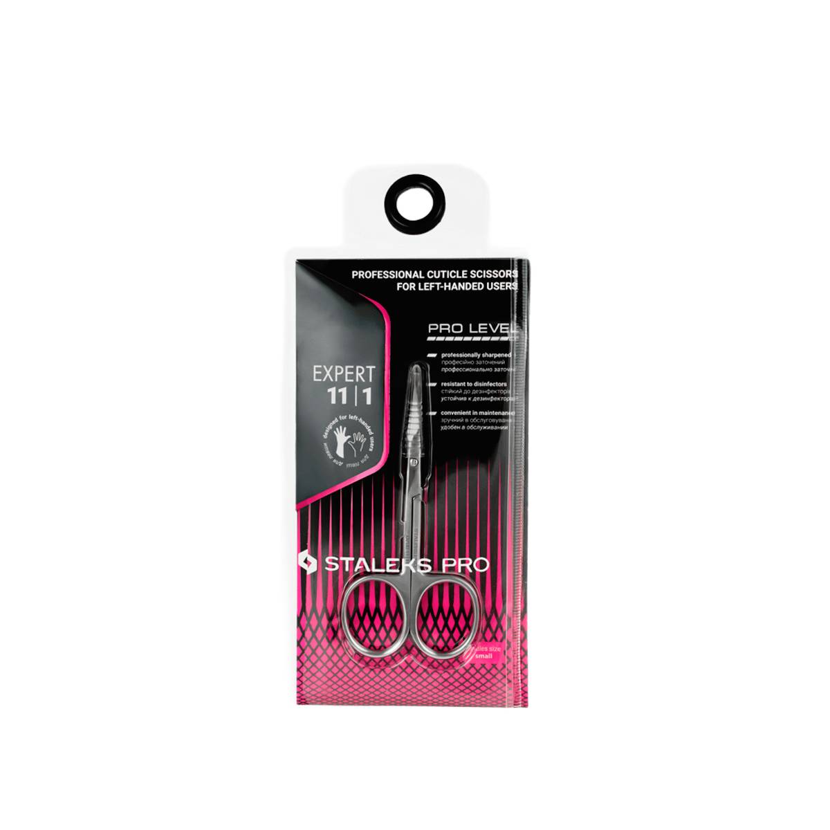 Επαγγελματικό ψαλιδάκι επωνυχίων STALEKS PRO EXPERT SE-11/1, ειδικά σχεδιασμένο για αριστερόχειρες τεχνίτες. Διαθέτει λεπτές, στενές λεπίδες με κλασική καμπυλότητα για ακριβή κοπή και εξαιρετική ορατότητα.