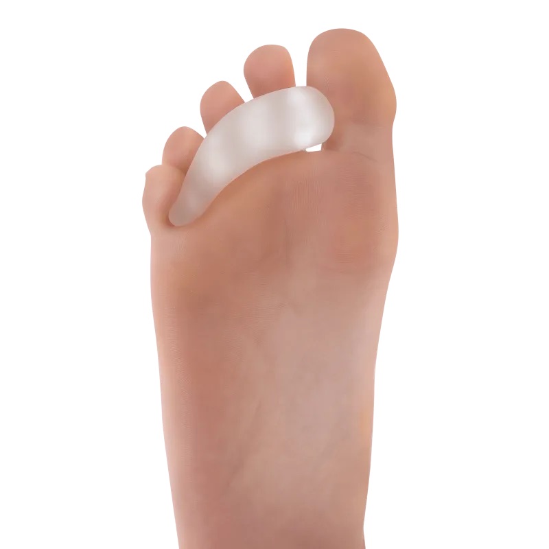Το μαξιλαράκι γεμίζει το κενό κάτω από τα δάχτυλα και τα αναγκάζει ήπια να εκταθούν (να ισιώσουν), μειώνοντας την κάμψη και την τριβή με το παπούτσι.