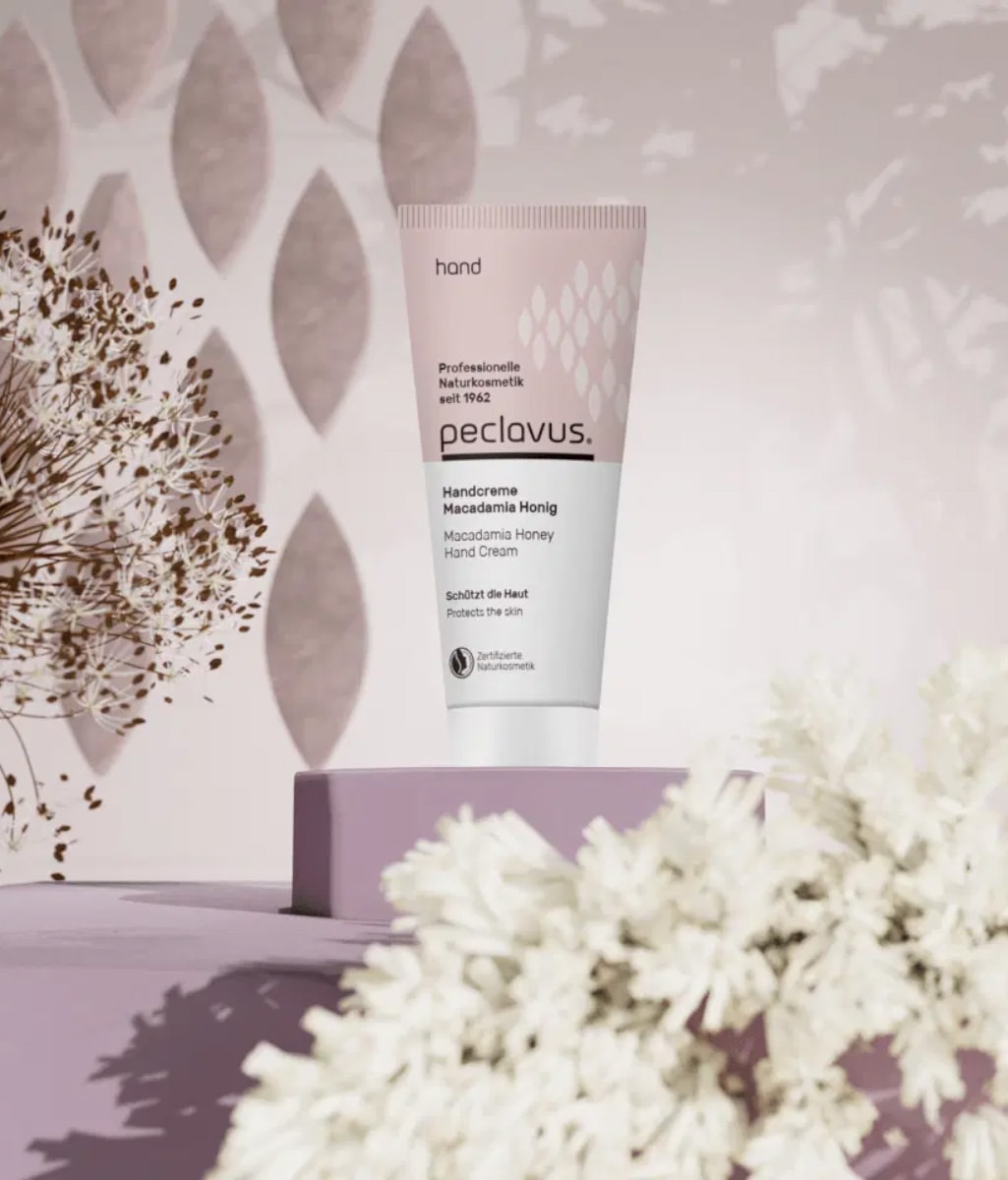 Προστατευτική κρέμα χεριών peclavus® με έλαιο Macadamia και Μέλι. Απορροφάται γρήγορα, ενυδατώνει βαθιά τα ξηρά χέρια και ενισχύει τον φυσικό προστατευτικό φραγμό.